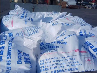 (4)作为精细化工中间体。在医药上用于制取硝酸胍、磺胺类药物等;也用来制取硫脲、硝酸纤维素稳定剂、橡胶硫化促进剂、钢铁表面硬化剂、人造革填料、粘合剂等。由双氰胺与甲酸反应可得医药中间体5-氮杂胞嘧啶。